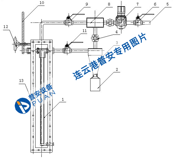 開啟壓縮空氣控制閥6;關閉吹掃閥9;開啟取樣閥11;壓縮空氣將通過取樣閥11吹掃取樣管。