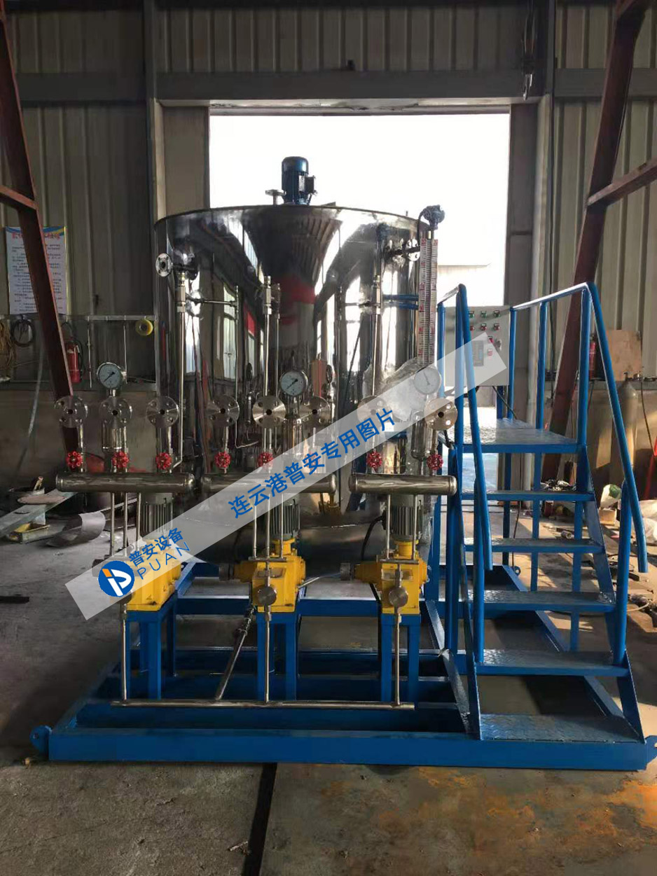 1、油田加藥裝置。主要用于在石油開采中向平臺上的井口和及其他系統(tǒng)注入絮凝劑、阻垢劑、緩蝕劑、破乳劑等各種藥液。