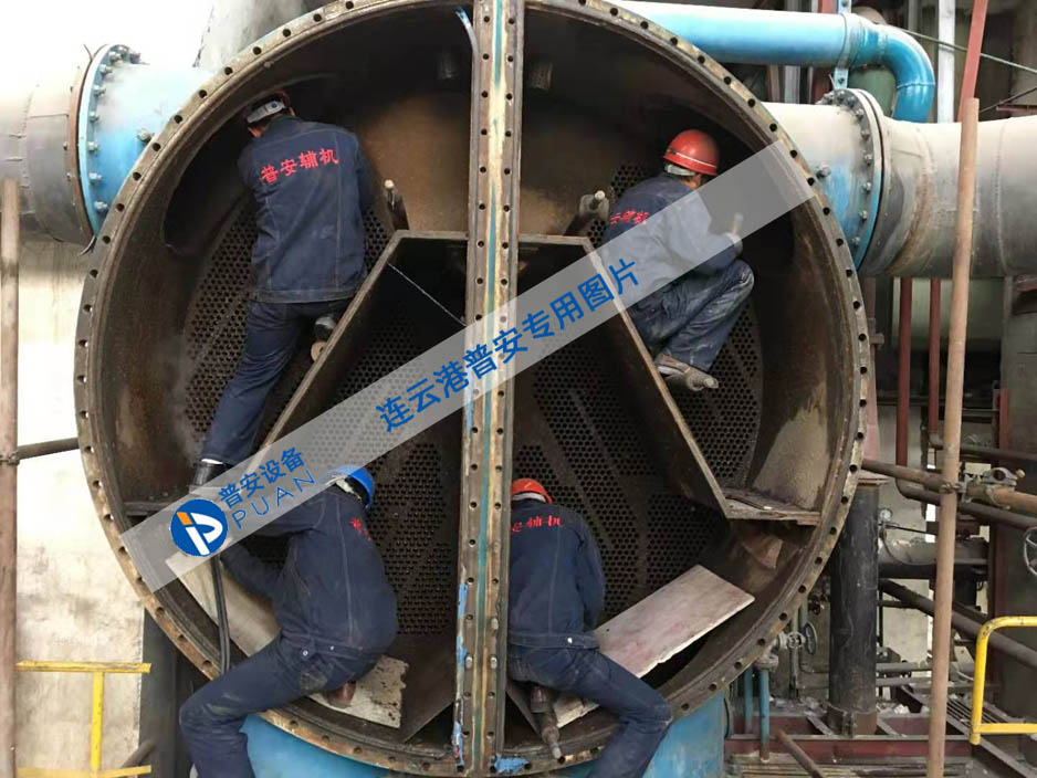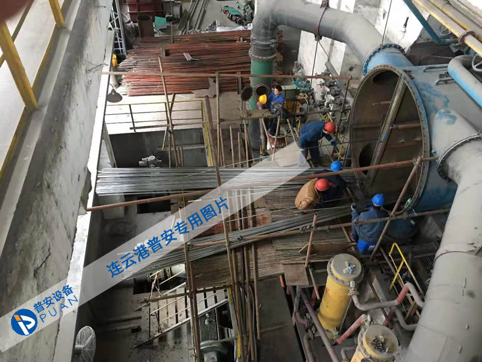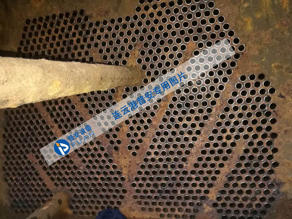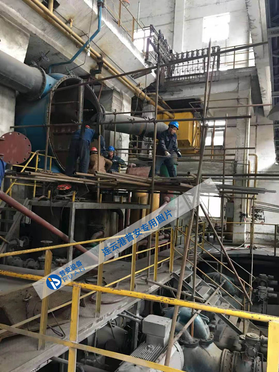 凝汽器主要由殼體[本體]+冷卻水室+導流管板+不銹鋼冷卻管+中間管板+擋汽板+凝汽器聚集器+化學補水器等組成的全焊接結構。殼體[本體]和水室焊成一個整體,殼體為鋼板焊接結構。在上殼體+水室及熱井均設計制造有人孔蓋,以便檢修+維修使用。筒體內部不銹鋼冷卻管用脹管法或脹焊法,將不銹鋼冷卻管固定在端頭管板上,中間有隔板支承管子向上撓曲防止共振,管束布置采用HEL-6的設計技術,這是國際通用的凝汽器設計標準,用該技術設計的凝汽器為汽流向心式,弧向布置,三角形排列,其特點是汽阻小,過冷度小。管束中間有從進口直達熱水井之寬闊汽道,兩側管束用帶形排列,在帶形外側,另為蒸汽沖刷之部分不銹鋼冷卻管。采用不銹鋼管,在汽道之間布置的擋汽板等防止蒸汽短路。